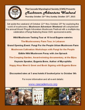 Hundreds of volunteers and thousands of hours make the Mt. Pisgah Arboretum and Cascade Mycological Society Mushroom Show what it is today – a Fantastic Fall Festival which must not be missed!