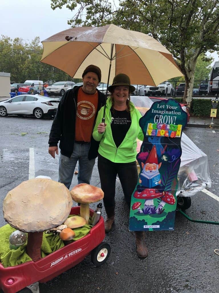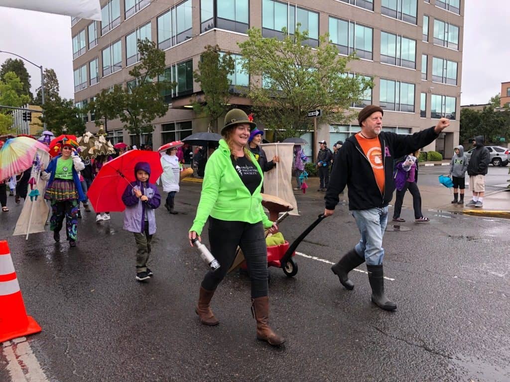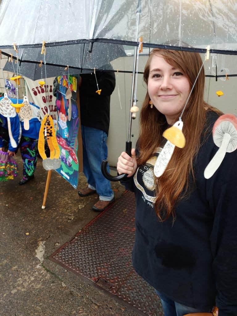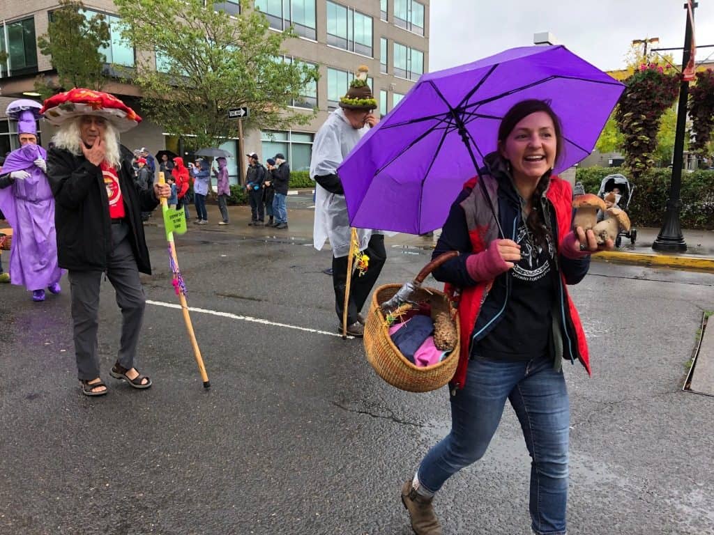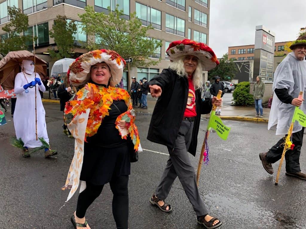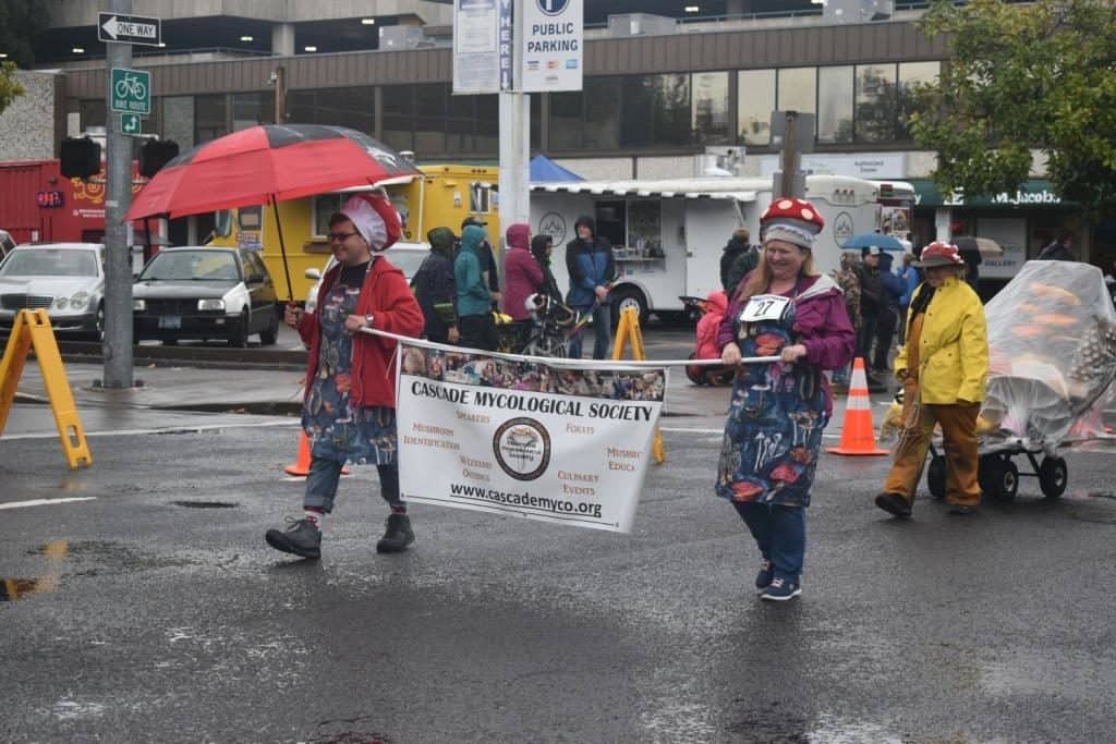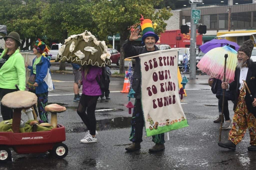CMS members had a terrific time walking in the Eugene Parade for the first time in our history. The parade was on Sunday, September 22, 2019, just one day after CMS celebrated the 20th anniversary of our first official organizational meeting. It did “rain on the parade”, but for mushroomers like us, it was all good! Here are a few pics from the parade courtesy of Peg Boulay, Bruce Newhouse, Greg Ringer, Matthew Johnson and Mark Devenoy.