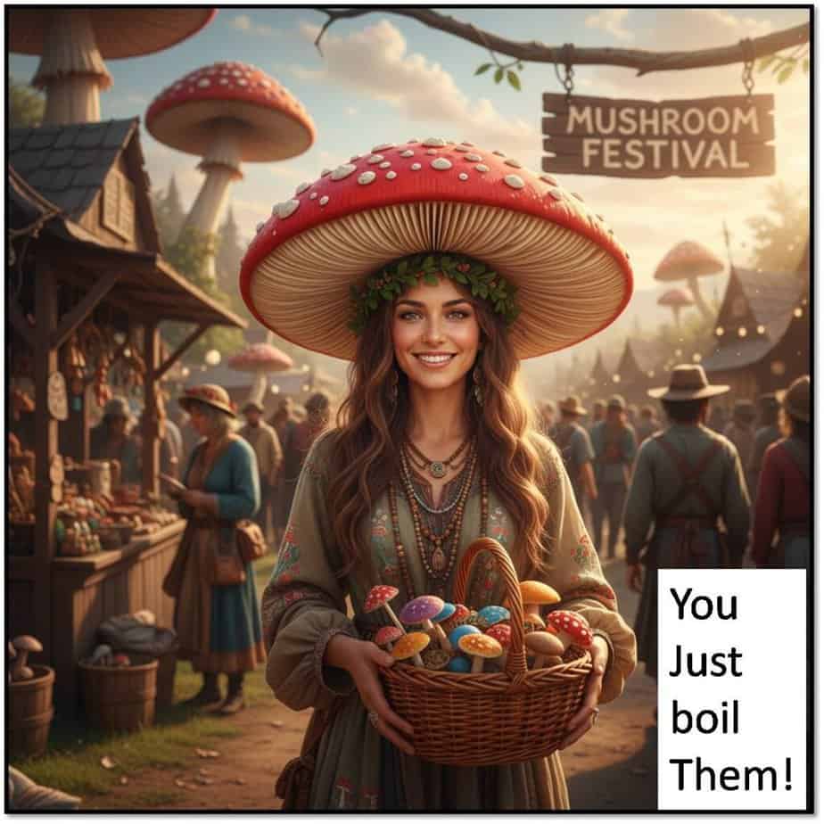 As someone who tends to carefully examine the pros and cons of such consequential decisions, I accessed the internet for advice. NO, I didn’t ask some chatbot or other AI algorithm for advice, I stuck with those who have experienced eating A. muscaria and those who have thoroughly researched this topic. The question was not whether this mushroom is psychotropic or poisonous; it was whether the much discussed water boiling method actually removes the chemicals that might negatively affect the person who eats it. According to Wikipedia, “The active constituents of A. muscaria are water-soluble; boiling and then discarding the cooking water at least partly detoxifies it. Drying may increase potency, as the process facilitates the conversion of ibotenic acid to the more potent muscimol. According to some sources, once detoxified the mushroom becomes edible.” If you’re looking for an alternate yet quite unusual method of detoxifying A. muscaria, the YouTube video by Mushroom Wonderland mentions the use of reindeer to get the job done. It also describes the connection between A. muscaria and Christmas traditions. Just keep in mind that I do not endorse this method nor would I consider using it, mostly because I do not own any reindeer.
